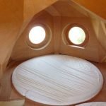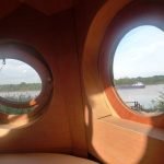And finally, as expected, the decor of the Owl Cabin’s interior is kept minimal with simple furnishings. The habitable scope is further improved by a round-shaped bed that complements the circular windows along with the overall roundish bearing of the owl-esque structure.
