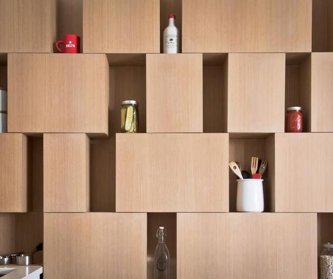 This new scope of refurbishment is quite evident from the shelving blocks along the wall facades of the apartment. These consist of usable improvements like recessed insertions, customized cabinets and even a hidden (but walk-in) closet that are spread throughout the floor. The old but extra height of the floor has also been utilized for constructing loft spaces that are enclosed with glass. This juxtaposition of opaque zones with transparent facades allows for both privacy and distribution of natural sunlight throughout the interior.