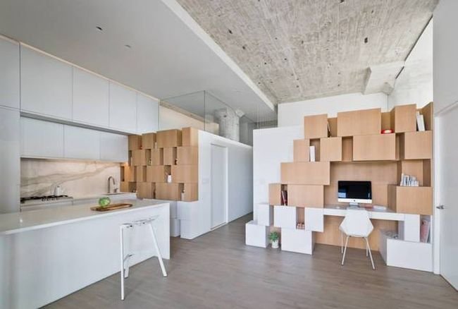 New York City boasts of many an industrial building, and few of them have actually been converted into habitation areas. The Brooklyn apartment in question here also belongs to this rare category, as it was transformed into a residential unit way back in 1980. And now, coming to back to 2014, SABO Project has given their designer twist to the antediluvian building by clearing up many of the old structural components inside the building, and then adding some innovative spaces of their own.