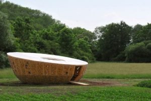 Circular home featuring walls with corn cobs